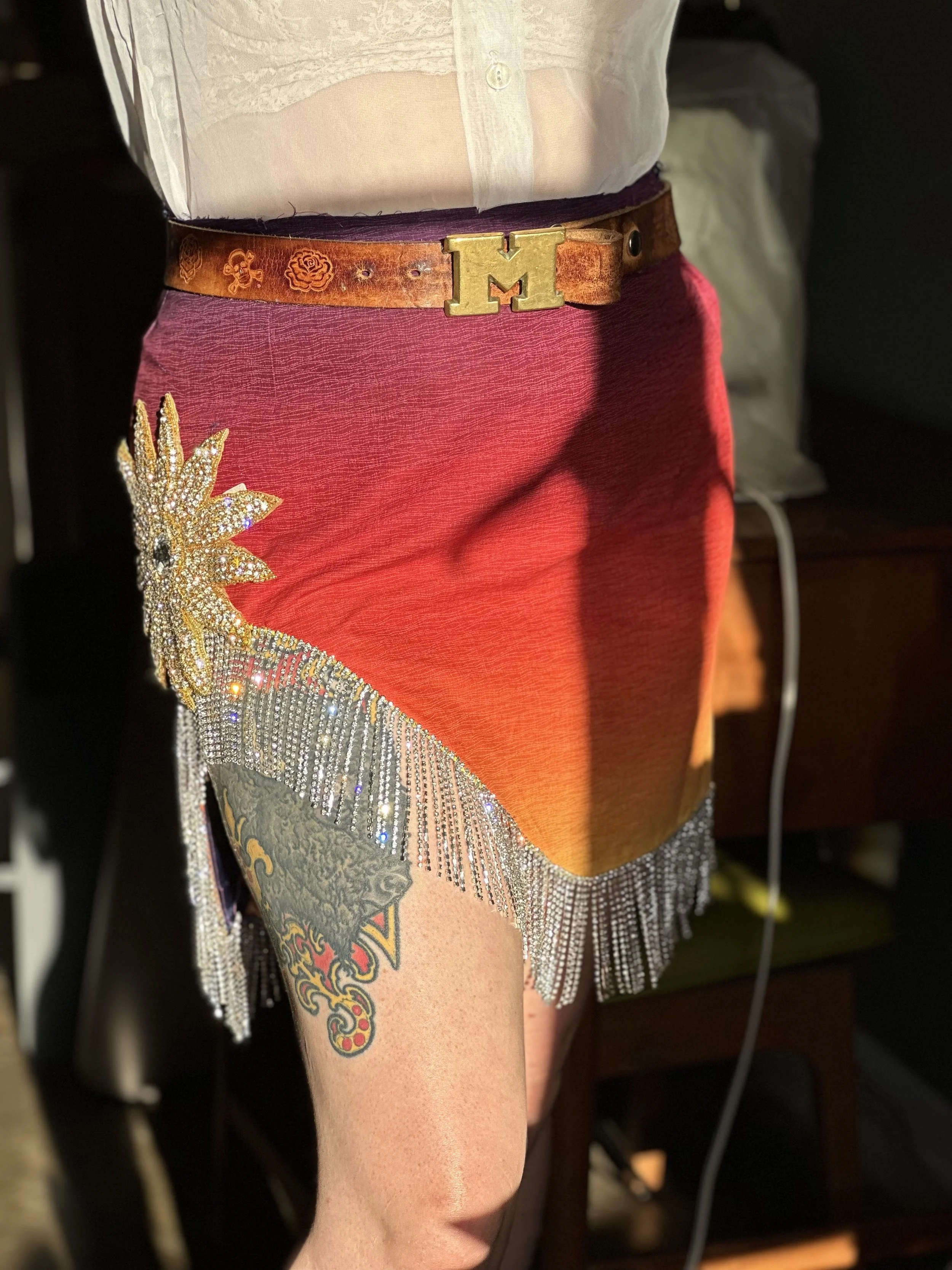 In August 2024, country singer-songwriter Marsha Craft tapped Sloane to create a custom skirt to be worn on stage. The collaboration ran all the way from the costume design up until the performance where Sloane served as Marsha’s stylist backstage. When Marsha decided to move from LA to Austin, Texas the two co-directed a farewell photoshoot featuring the bespoke garment in Marsha’s beloved neighborhood of Thai Town.